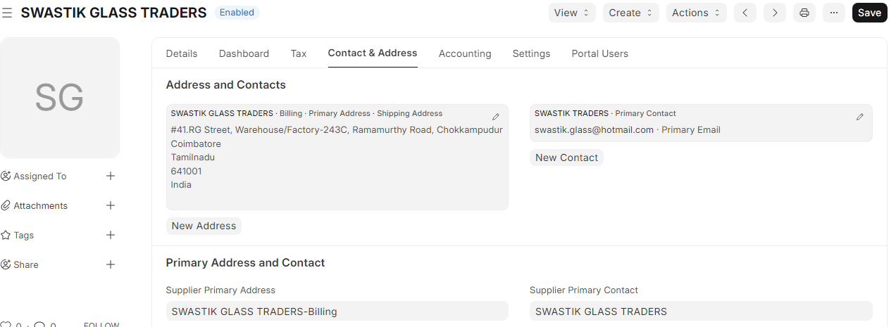 > Tip: When you select a Supplier in any transaction, Contact for which "Is Primary" field id checked, it will auto-fetch with the Supplier details.