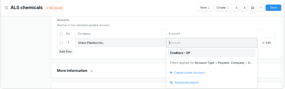 Add the default account from which invoices against this supplier will be paid. Add additional rows for more companies, you can select only one account per company.